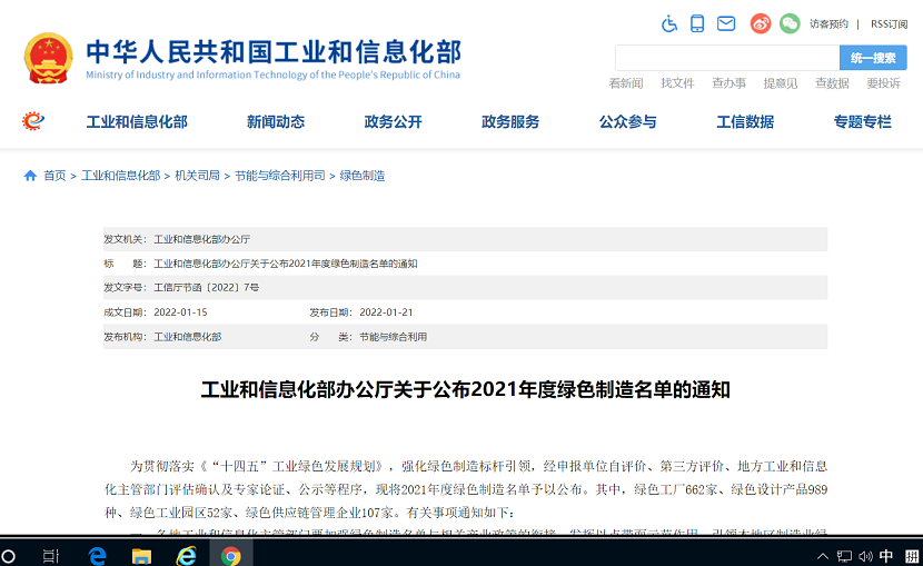 2022年1月21日工信部節(jié)能司正式發(fā)布2021年度國(guó)家級(jí)綠色工廠名單,河冶科技股份有限公司作為河北省入選單位榜上有名,成為2021年度662家國(guó)家級(jí)綠色工廠之一。