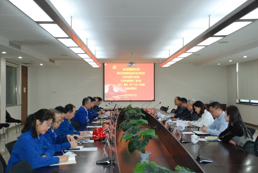 2024年度“產(chǎn)-銷-用三體聯(lián)動(dòng)”黨建聯(lián)建活動(dòng)于2024年1月11日在河冶科技舉辦,河冶科技黨委書記、董事長(zhǎng)總經(jīng)理米永旺、黨委副書記、常務(wù)副總經(jīng)理梁敬斌、工會(huì)主席趙金伶、攀鋼釩鈦貿(mào)易公司黨總支書記、總經(jīng)理汪朝云參加了本次活動(dòng)。